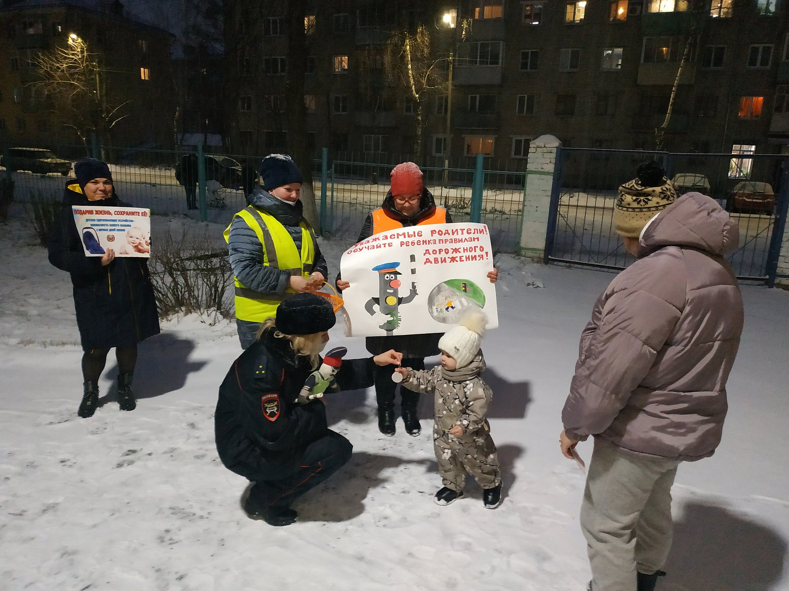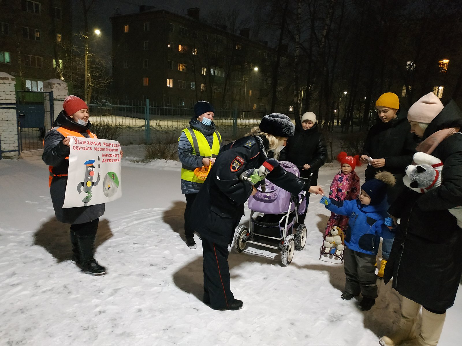 В рамках данного мероприятия родителям напоминали о правилах безопасной перевозки детей, о необходимости обучения детей правилам дорожного движения, обеспечения несовершеннолетних световозвращающими элементами. Родителям воспитанников были вручены листовки по ПДД, а детям в качестве подарка световозвращающие брелоки и значки.