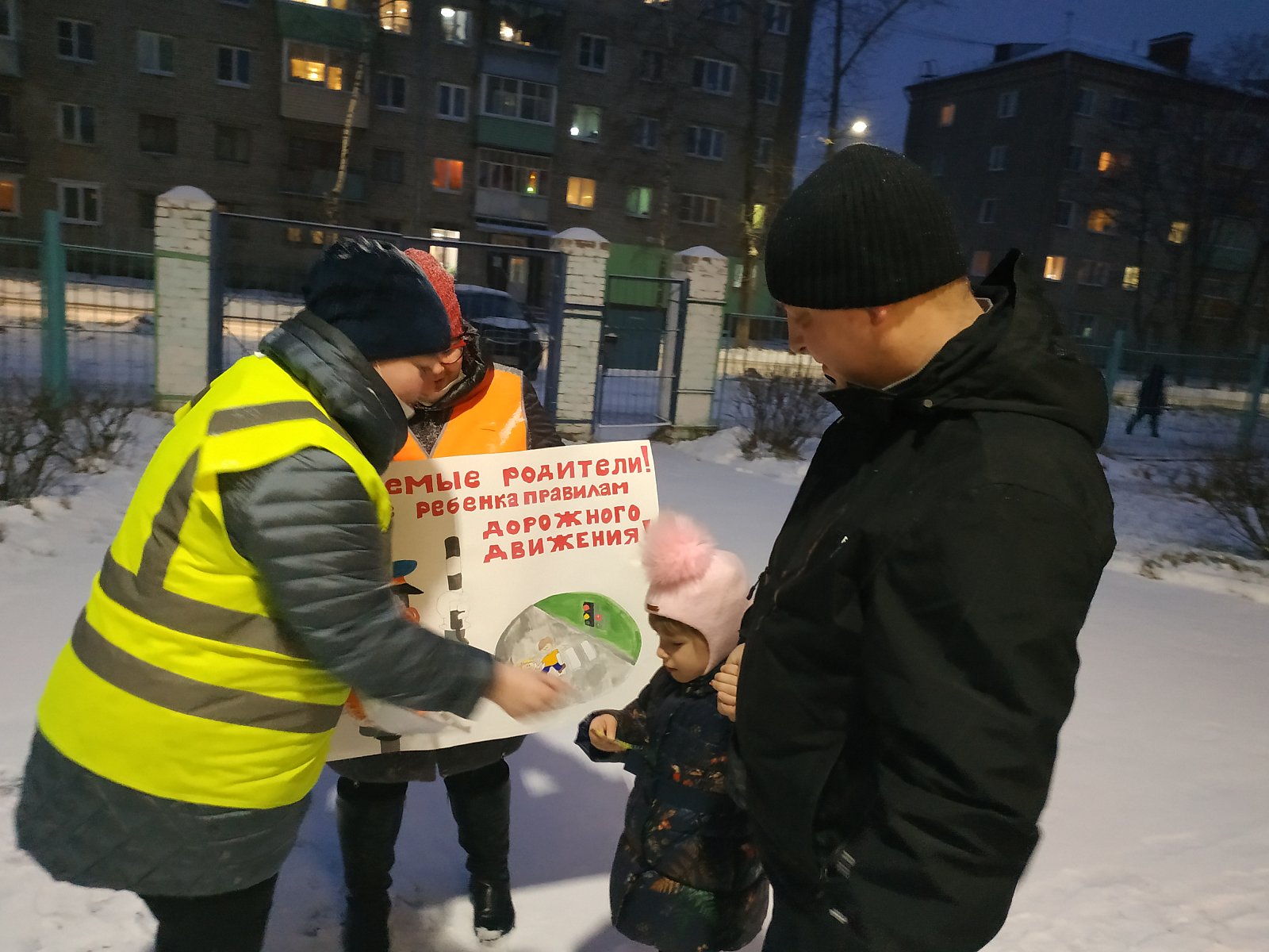 В целях предупреждения и профилактики детского дорожно-транспортного травматизма 1 декабря 2021 года в детском саду прошла акция «Родительский патруль», участниками которой стали родительская общественность и инспектор по пропаганде ОГИБДД МО МВД России «Ковровский» Демчан Ю.А.